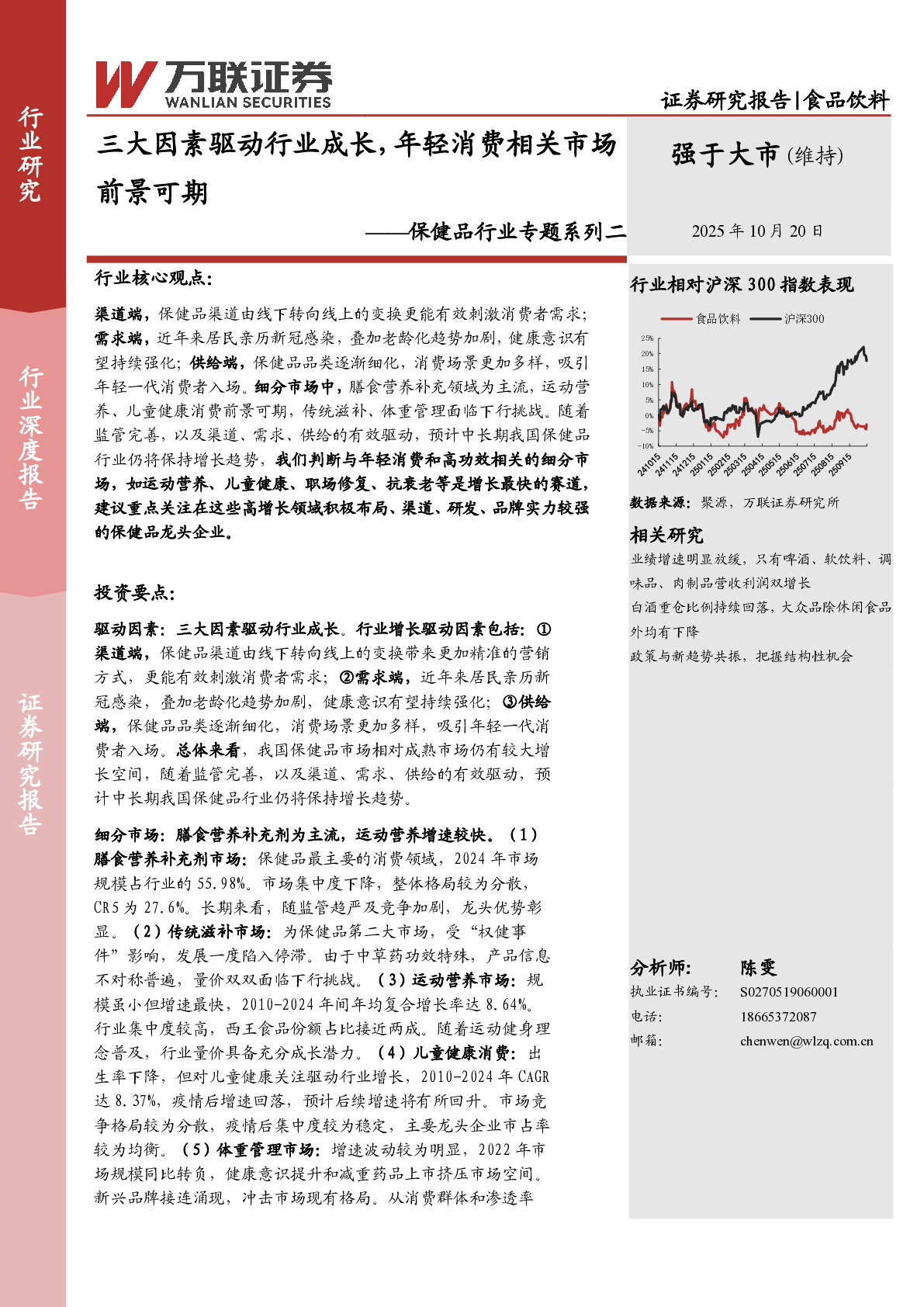 保健品行业专题系列二:三大因素驱动行业成长,年轻消费相关市场前景可期