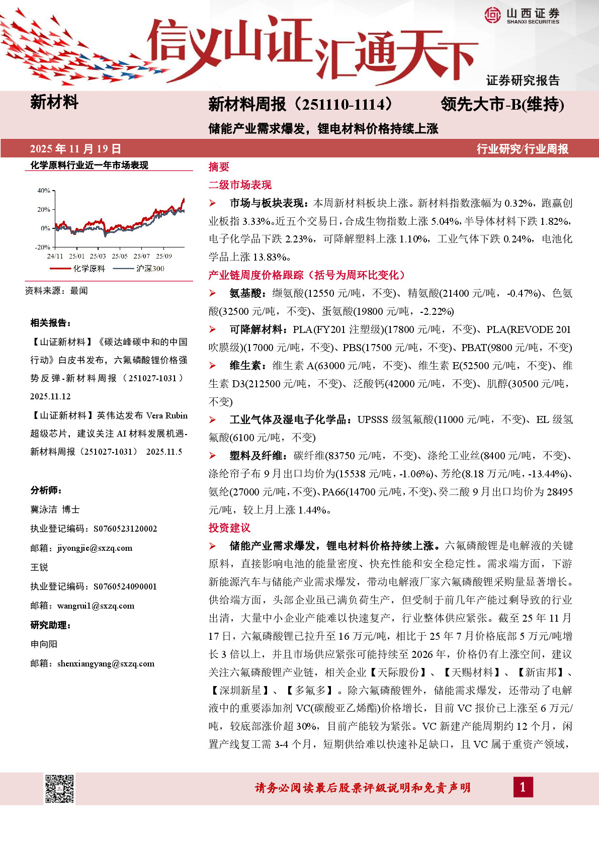 新材料行业周报:储能产业需求爆发,锂电材料价格持续上涨