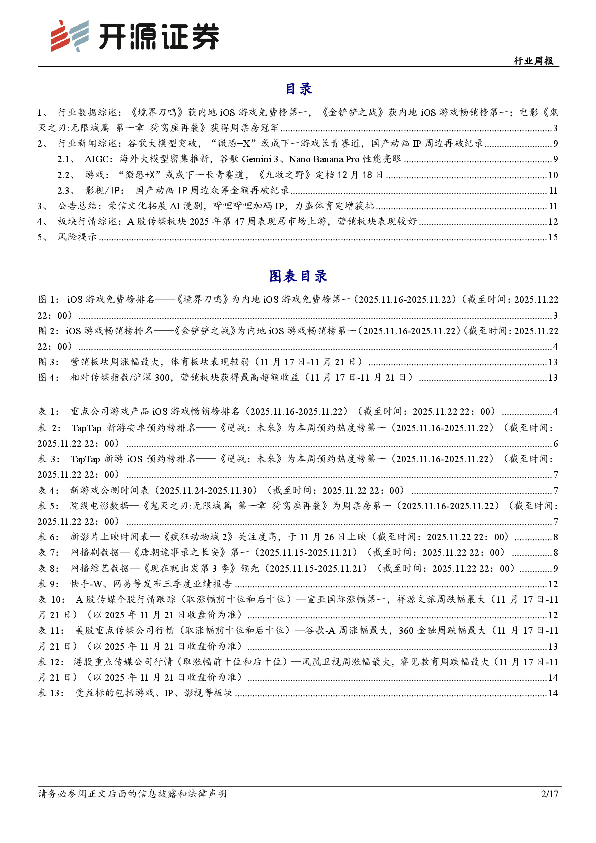 - 1、 行业数据综述:《境界刀鸣》获内地 iOS游戏免费榜第一,《金铲铲之战》获内地 iOS游戏畅销榜第一;电影《鬼