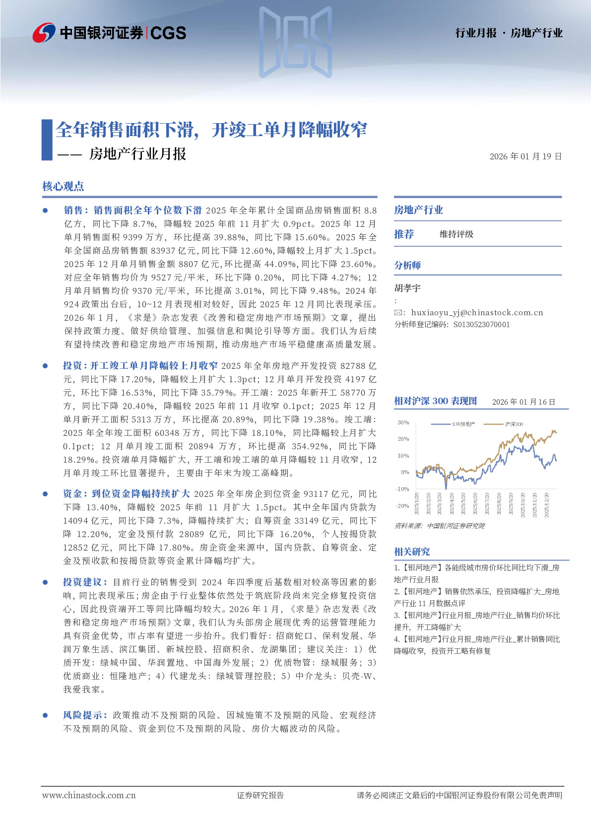 房地产行业月报:全年销售面积下滑,开竣工单月降幅收窄