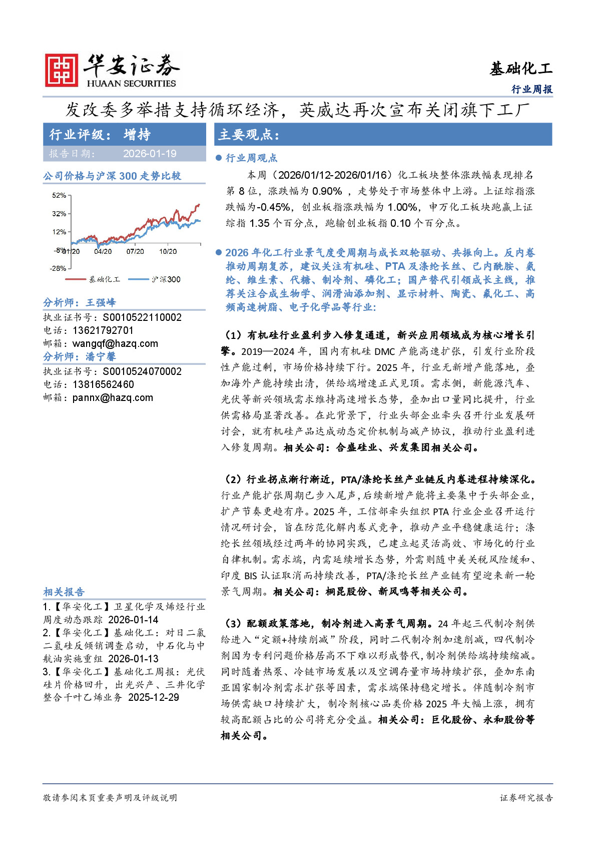 基础化工行业周报:发改委多举措支持循环经济,英威达再次宣布关闭旗下工厂