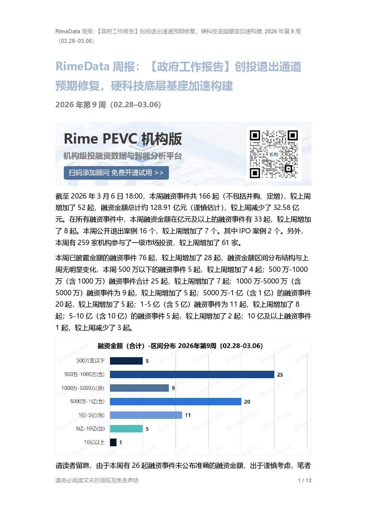 RimeData周报:【政府工作报告】创投退出通道预期修复,硬科技底层基座加速构建 2026年第9周